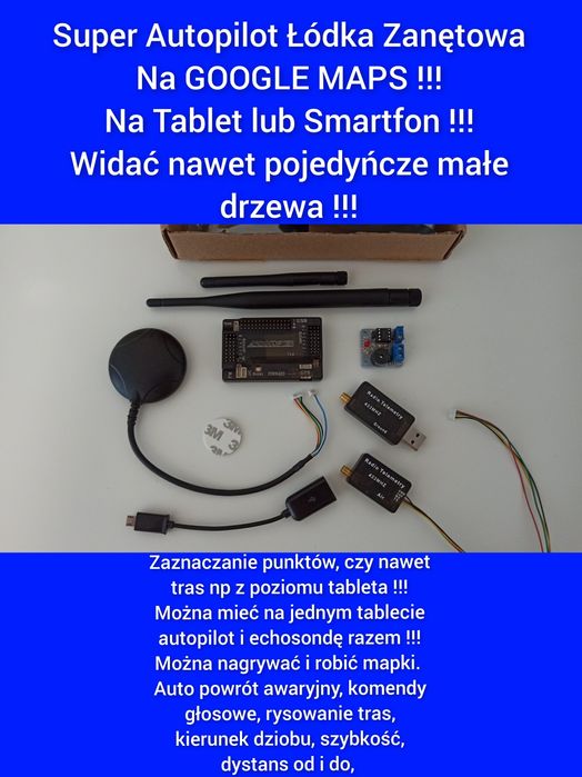 Autopilot GPS Łódka Zanętowa na Tablet Smartfon na Google Mapa