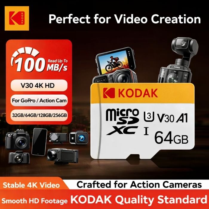Karta pamięci KODAK 64GB MicroSD C10 V30 U3 A1 4K PREMIUM Chip 100MB/s