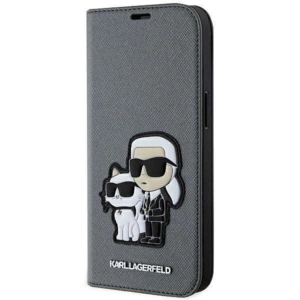 Etui Karl Lagerfeld Saffiano Karl&Choupette na iPhone 14 - srebrne