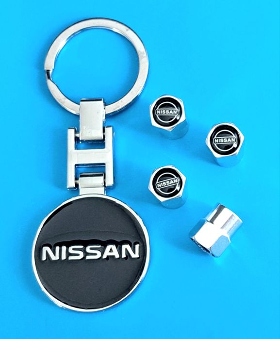 *NOWY* Breloczek NISSAN + Nakrętki na wentyle srebrne komplet tuning