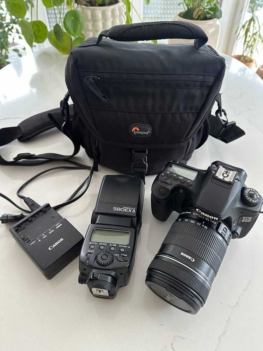Aparat Lustrzanka Canon EOS 60D obiekt EFS 18-135 Lampa 580 EXII Torba