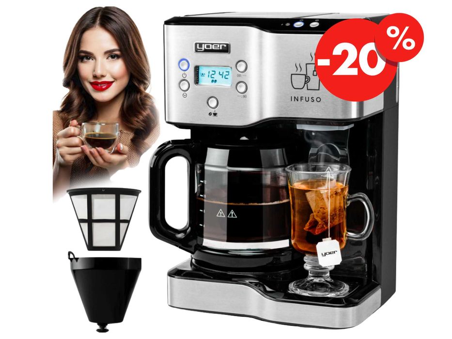 Nowy EKSPRES Yoer PRZELEWOWY Do Kawy 2w1 1900W + Dystrybutor Wody -20%