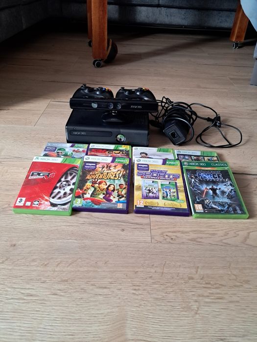 Xbox 360 + kamerka kinect + 2 pady + 8 gier