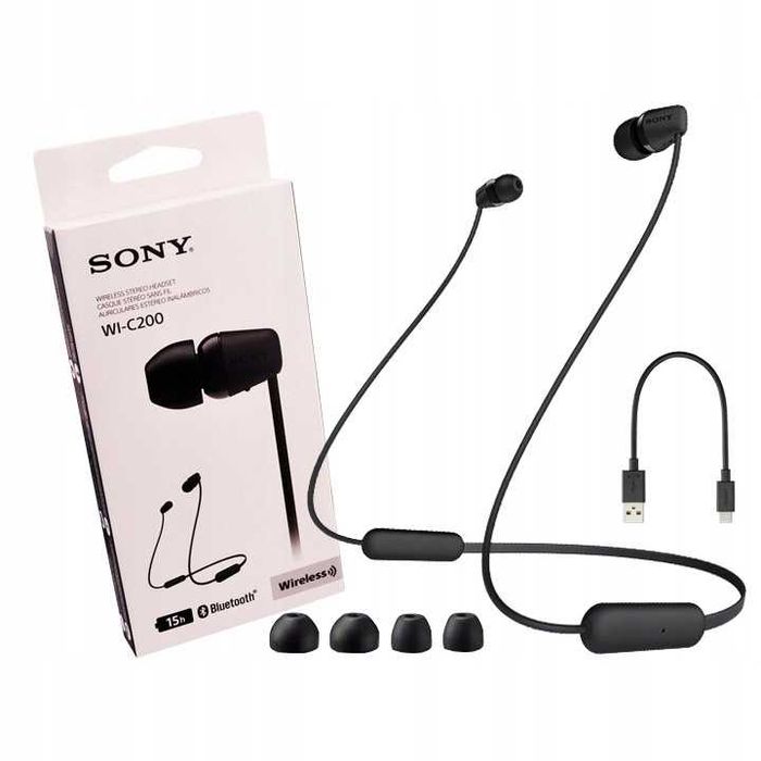 Nowe Słuchawki SONY WI-C200 – Bluetooth, Czarne