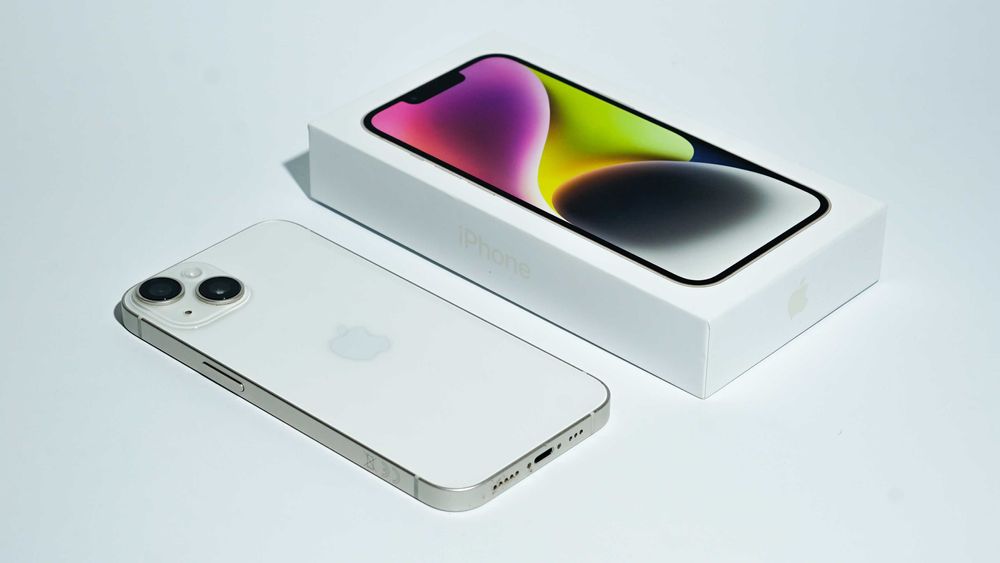 Iphone 14, Starlight, 128GB +2x etui