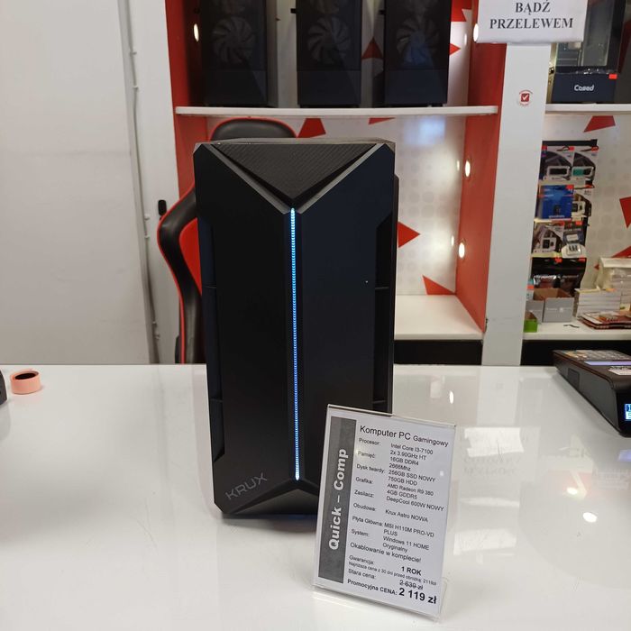 Komputer do Gier i3-7100 / 16GB DDR4 / SSD / AMD Radeon R9 4GB / WIN11
