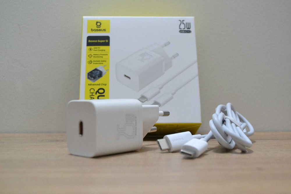 Szybka ładowarka sieciowa Si 25W 3A z kablem USB-C 1m biały usbc