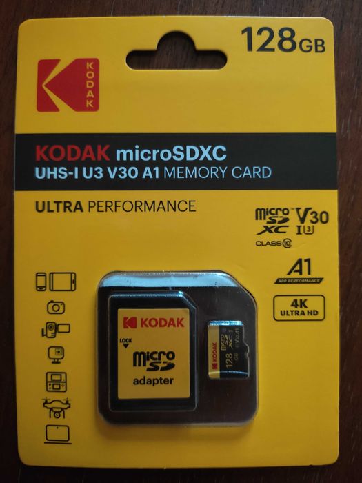 Karta pamięci Kodak 128GB microSD SDXC UHS-I U3 V30 A1 4K + Adapter