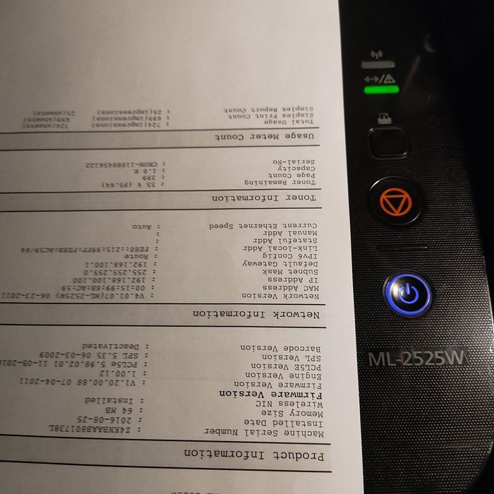 WiFi drukarka laserowa Samsung ML-2525W tylko 399 stron