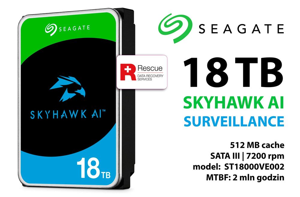 NOWY! Seagate Skyhawk AI do NAS 18TB Gwarancja Producenta 2027 r.!