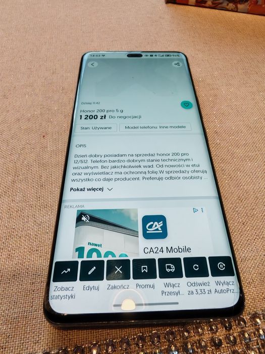 Honor 200 pro  5g 12/512 120hz 100W,66W bezprzewodowe stan salonowy ig