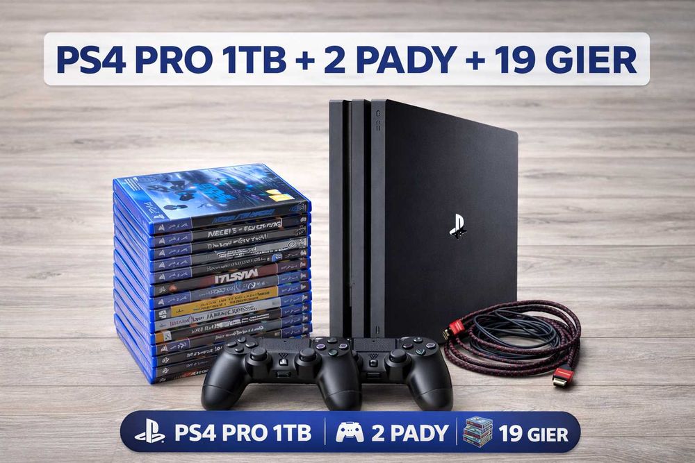 PlayStation 4 Pro 1TB + 2 pady + 19 gier Mega zestaw gotowy do gry