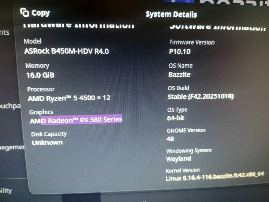 Ryzen 5 4500, RX580, Bazzite OS, Desktop
