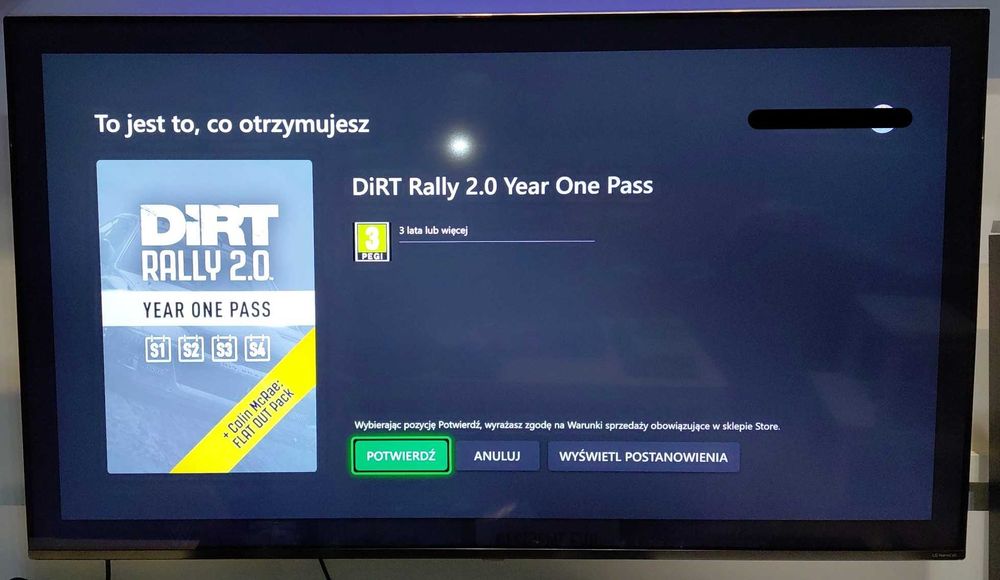 XBOX ONE dodatek cyfrowy do gry DIRT RALLY 2.0 robiący edycje GOLD