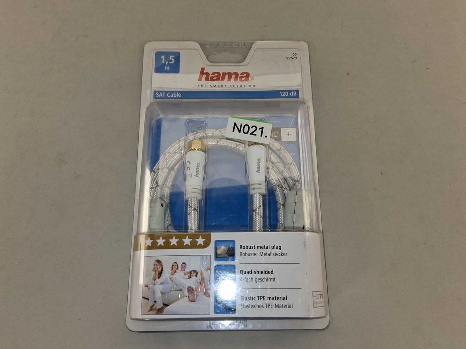 N021 Kabel Antenowy Hama Sat Coaxialny 1,5 m 120 dB w Oplocie
