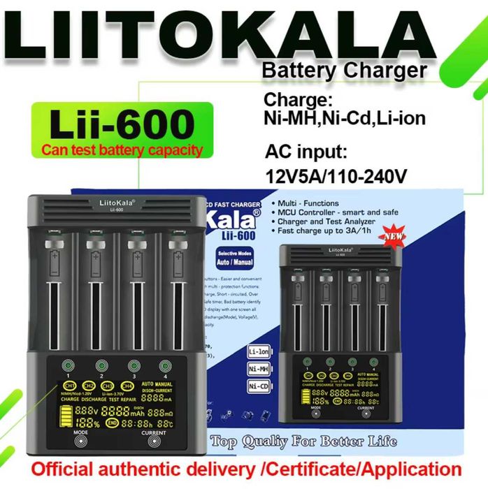Profesjonalna ładowarka LiitoKala Lii-600 + Zasilacz (różne baterie)