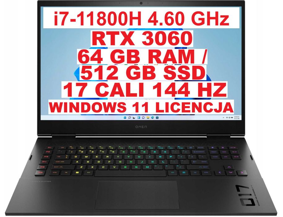 OMEN 17 CALI 144HZ i7 11800h 4.6ghz RTX3060 64 GB RAM 512 SSD LAPTOP