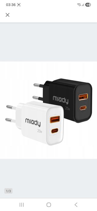 Zestaw 2x szybka  ładowarka sieciowa usb c  usb a 20W