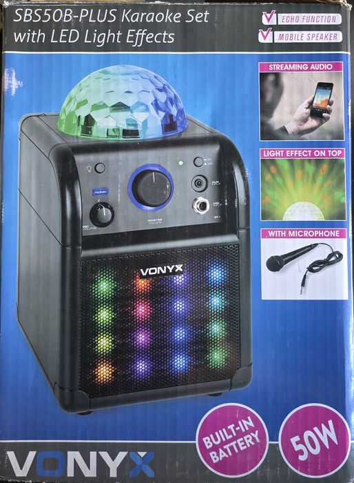 Zestaw KARAOKE Głośniki efekt LED BT USB mikrofon.