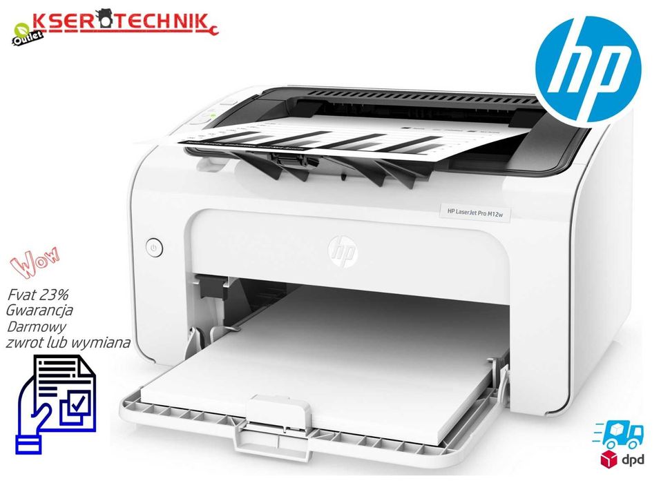 Drukarka jednofunkcyjna laserowa HP M12W / Mała do domu / Tani Toner