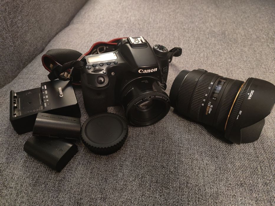 Aparat Canon 70D + Canon 50mm 1.8 + Sigma 10-20mm + trzy baterie