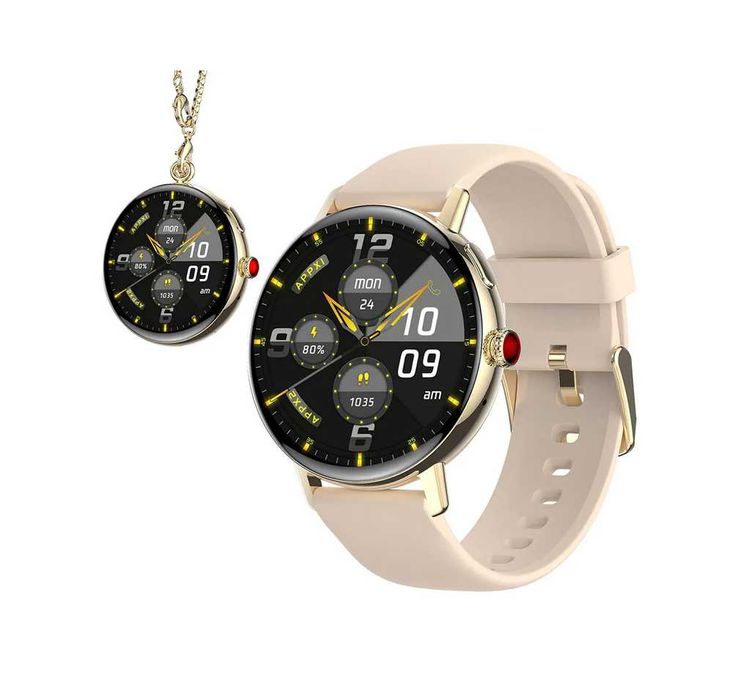 Smartwatch Damski AMOLED Gold Zestaw 3 Paski Wisiorek Rozmowy Polski
