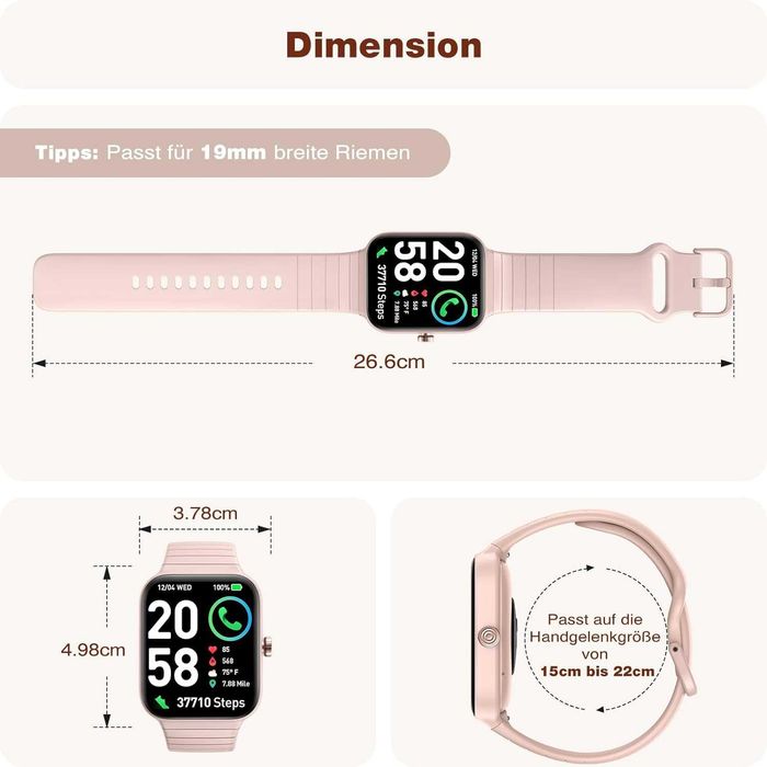 SMART WATCH Damski IDW15 RÓŻOWY 1,8" B.T 5.3 300mAh Tętno Kalorie Sen