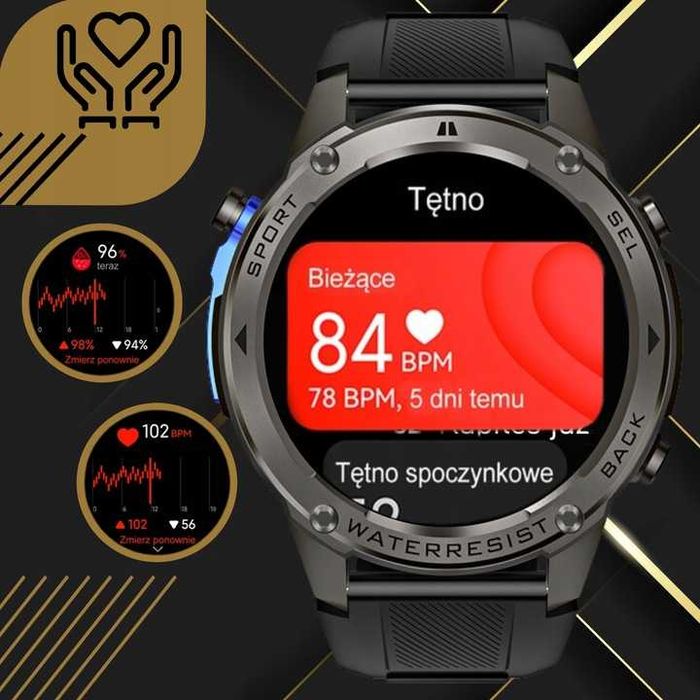 SMARTWATCH Wojskowy Militarny Taktyczny 1000mAh ROZMOWY Kompas Menu PL