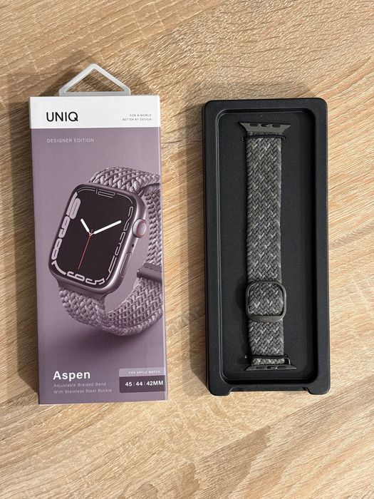 Pasek UNIQ Aspen Braided do Apple Watch 42/44/45 mm, szary, oryginał