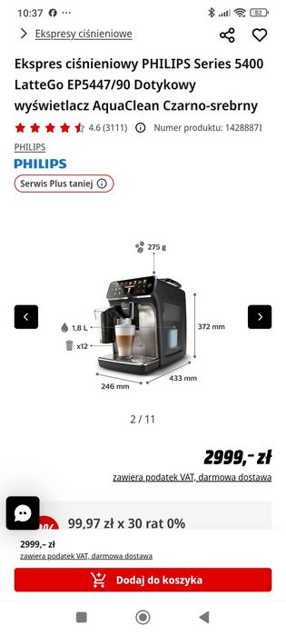 ekspres do kawy philips latte go 5400 w AGD drobne