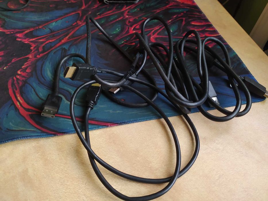 Zestaw przewdy HDMI displayport, zasilacz, kable sata itp