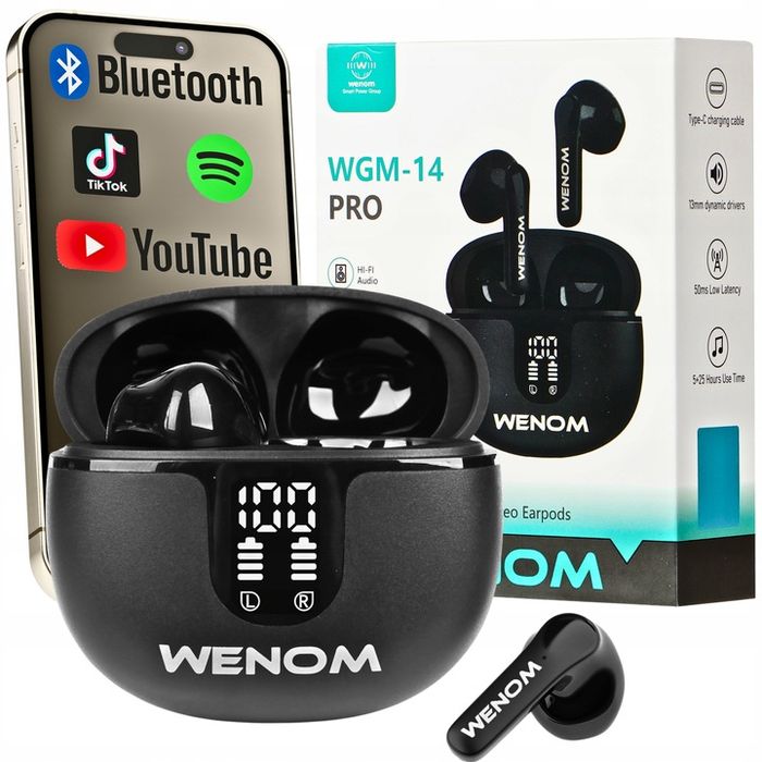 Słuchawki Bezprzewodowe Douszne Wenom Wgm 14-pro Anc 2 Mikrofony Led E