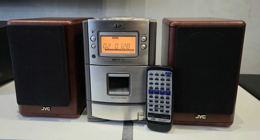 JVC mikrowieża FM RDS z odtwarzaczem CD, tape, AUX - pilot, głośniki
