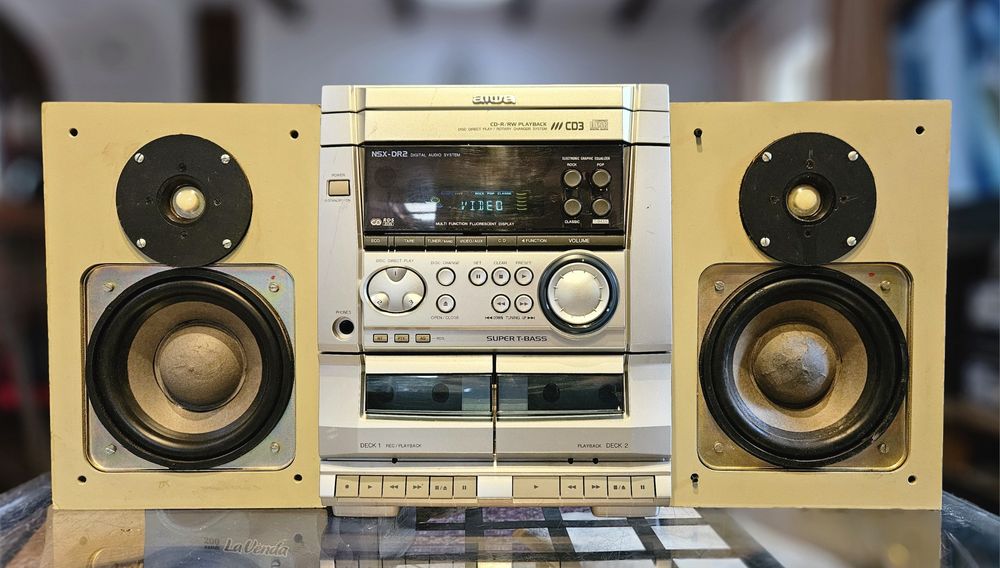 Wieża z kolumnami i zmieniarką na 3 płyty,  magnetofon
