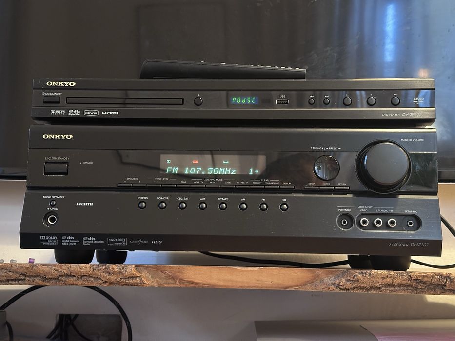 Zestaw Amplituner ONKYO TX-RS307 + DVD DV-SP405 + piloty