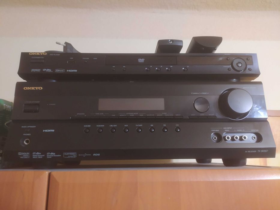 Zestaw Amplituner ONKYO TX-RS307 + DVD DV-SP405 + piloty