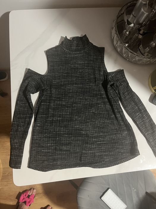 Bluzka even&odd wycięte ramiona odkryte długi rękaw golf prążek