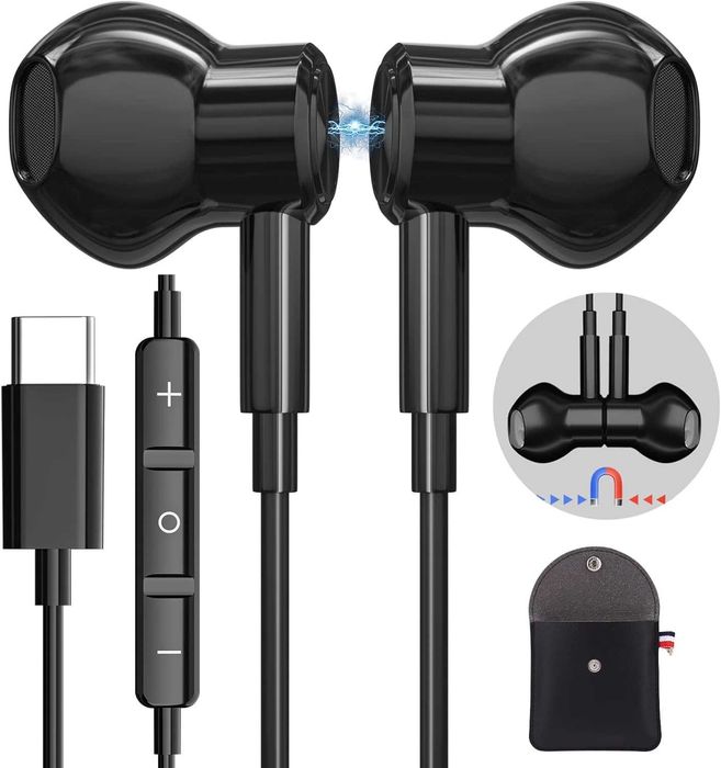 Słuchawki douszne z mikrofonem USB-C do telefonu tabletu magnes etui