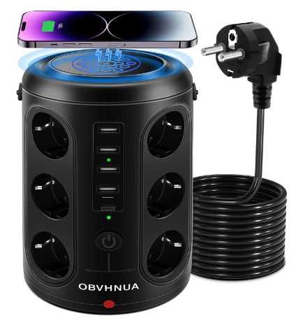 OBVHNUA Listwa zasilająca 18w1 2500W EU USB USB-C indukcja 10W