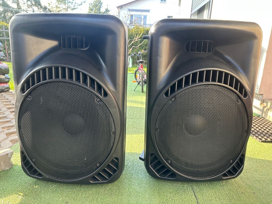 Kolumny estradowe 15” ze wzmacniaczem i statywami