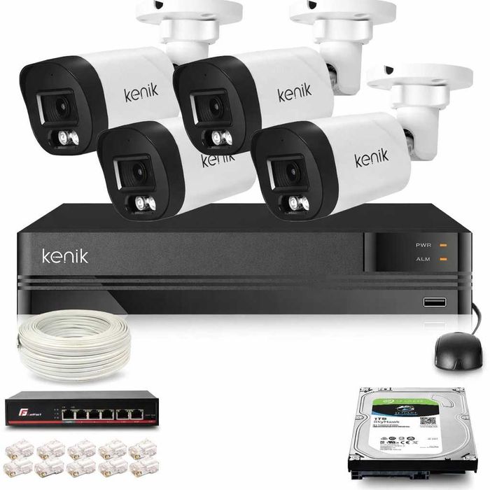 Zestaw monitoringu IP Kenik 4 kamery tubowe 5MPx 1TB