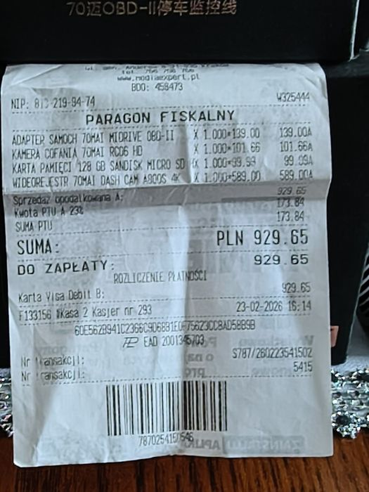 Widejestrator 70mai 800s nowy kupiony w lutym  2026r