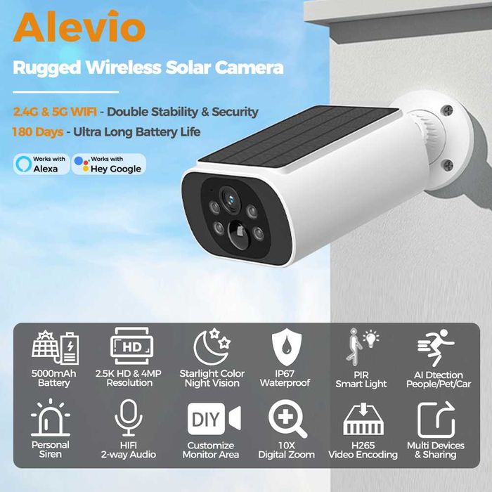 Zewnętrzna kamera solarna 5K/4MP WIFI kolorowy noktowizor ALEVIO2