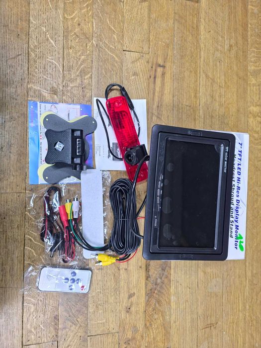 Monitor 7" LCD TFT 12V/24V z 2 wejściami AV z kamerą cofania