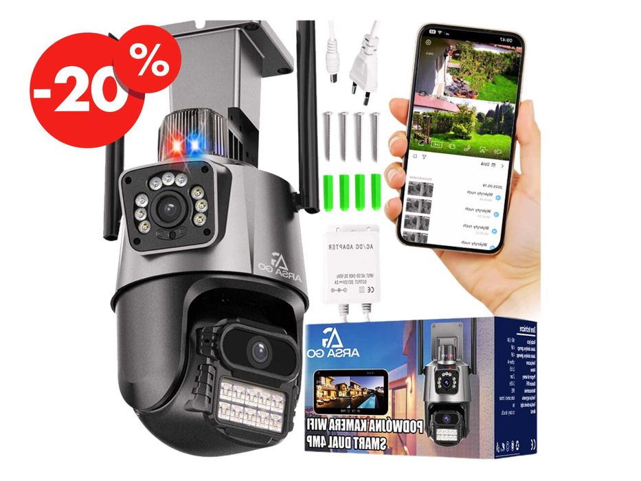 Kamera IP Obrotowa Zewnętrzna Monitoring Obrotowa WiFi Detekcja OKAZJA