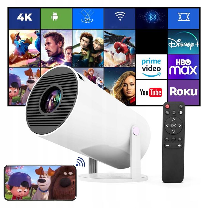 PROJEKTOR 4K Rzutnik 1080P Wifi6 Bluetooth 5 Android Wiele Aplikacji