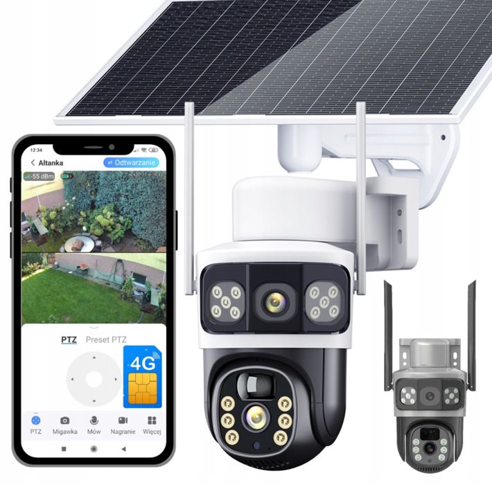 CAŁKOWICIE Bezprzewodowa Kamera solarna na kartę SIM obrotowa zewnątrz