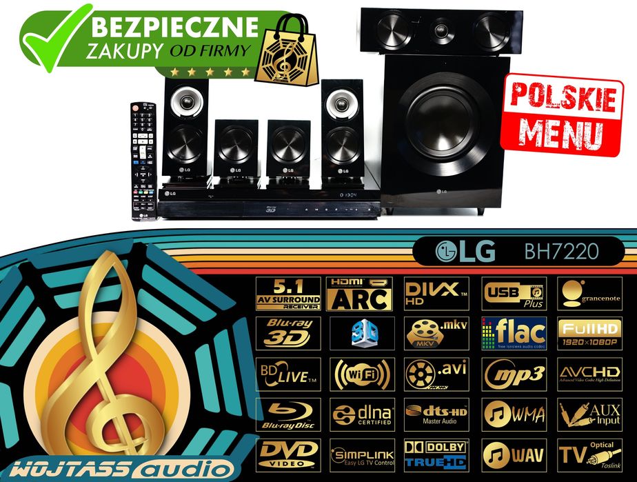 Kino domowe Blu-Ray 3D LG BH7220 * DivX HD mkv avi MP3 WMA 1100W RMS
