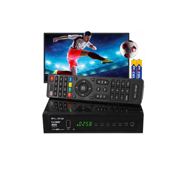ZESTAW Tuner Dekoder TV naziemnej telewizji full HD usb hdmi baterie PILOT dolby digital PLUS uniwersalne urządzenie EPC polskie menu