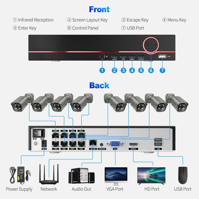 Zestaw kamer PoE BLOW 4x5MP z dyskiem  2TB  5MP